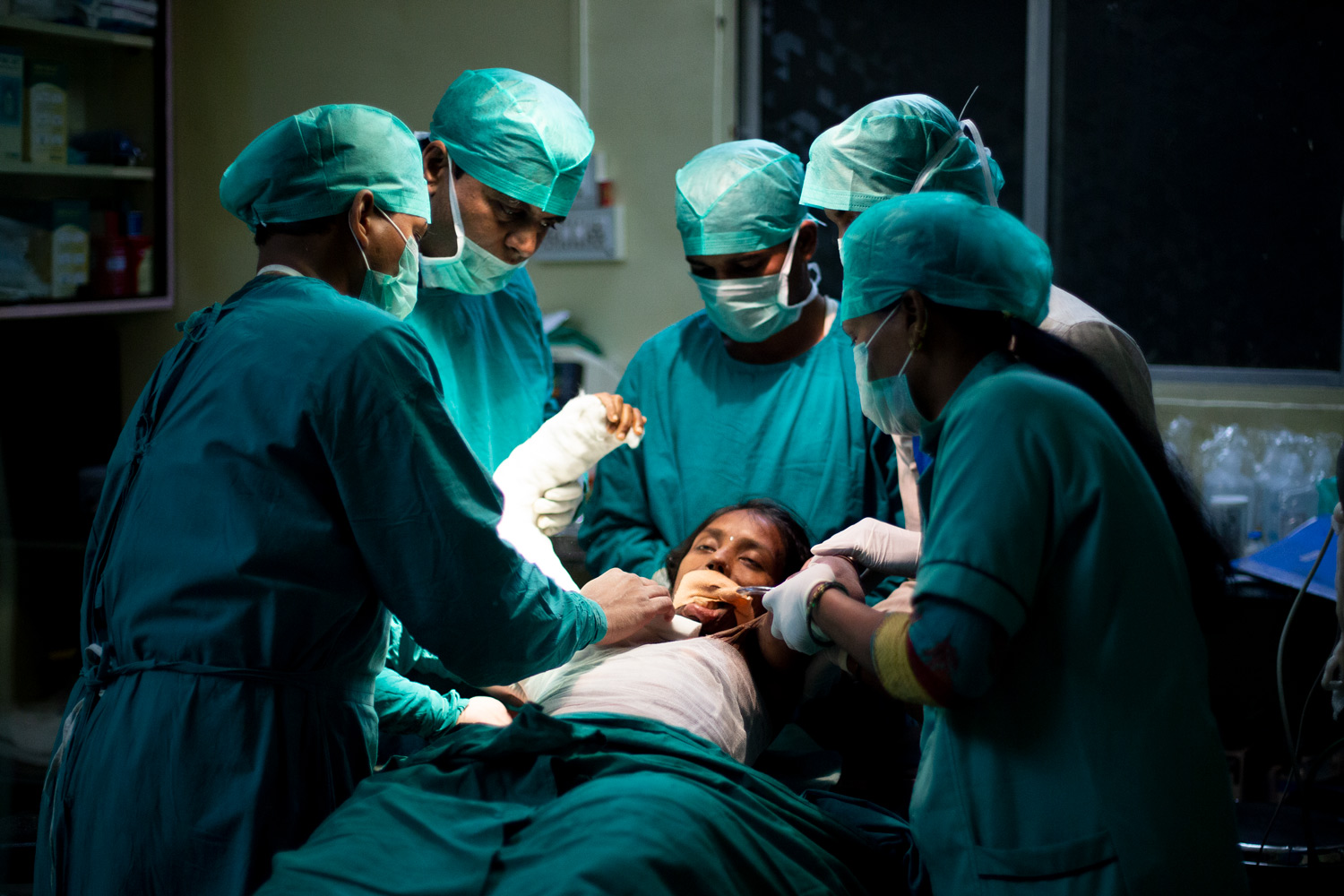 Operation to separate the arm from the body of Jaya, a survivor of an acid attack.